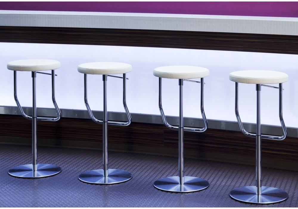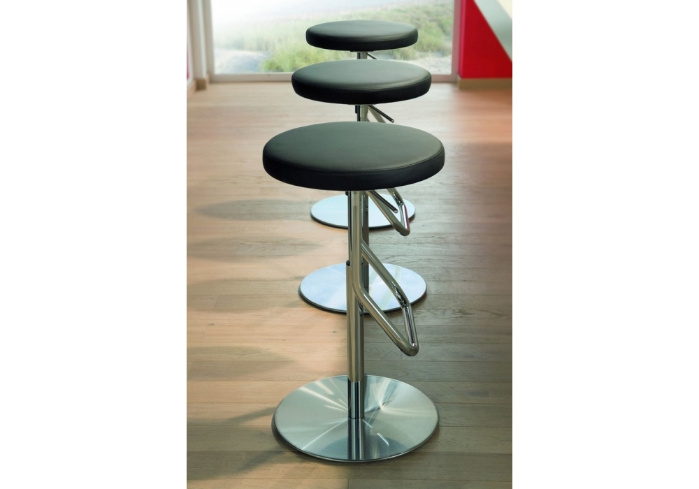 S 123 PH von James Irvine für Thonet entworfen, ist ein Barhocker, Gestell aus Edelstahl, verchromte Gasfeder, Fußstütze aus Stahlrohr. Drehbarer Sitz aus geformtem Sperrholz, mit Vollpolsterung mit Stoff-, Leder- oder Lederbezug. Höhenverstellbar.