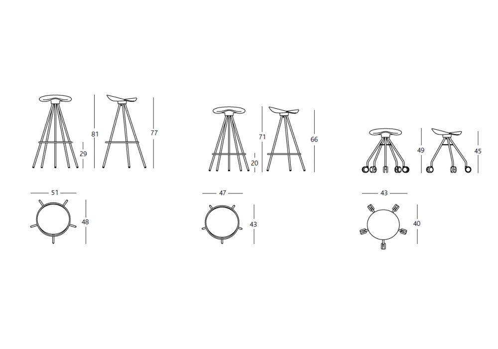 Jamaica von Pepe Cortés für BD Barcelona entworfen, ist ein Hocker mit verchromter Stahlstruktur und drehbarem Sitz. Erhältlich in verschiedenen Größen und Materialien. Auch in der Version mit Rädern hergestellt.