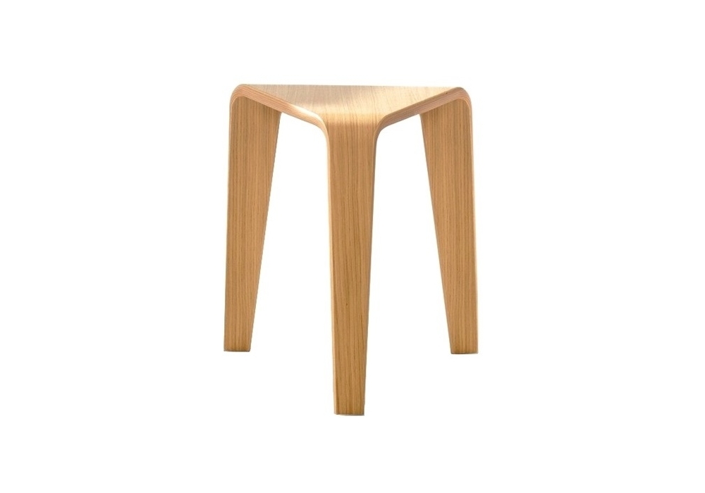 Ply von Lievore Altherr Molina für Arper entworfen, ist eine Hocker mit dreibeinigem Gestell aus gebogenem Sperrholz, lieferbar mit Oberfläche in Eiche natur oder in der Farbe Schwarz. Für Holzböden sind auch Füße mit Filzgleiter erhältlich. Ply ist ein System von niedrigen Tischen und Hockern, dreieckig und als Modul verwendbar, in fließenden Formen aus Holz.Tisch- platte und Beine bilden einedurch- gehende Linie, die geringe Größeund das warme Material ergänzen die dynamische Form.
