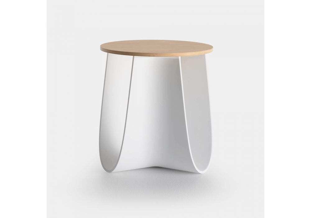 Sag von Nendo für MDF Italia entworfen, ist ein Hocker für den Innen- und Außenbereich, mit Stützstruktur aus starrem Polyurethan, erhältlich in Weiß oder Schlamm, mit matt geprägter Oberfläche. Die Sitzfläche ist im gleichen Material und in den gleichen Farbvariationen wie die Struktur oder in Bambus.