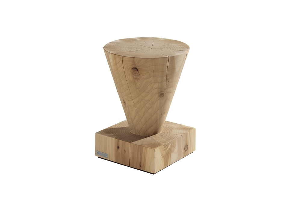 Kono von Mario Bellini für Riva 1920 entworfen, ist ein Hocker aus massivem duftendem Zedernholz, der aus einem einzigen Block gearbeitet ist und sich durch die klassische Kegelform mit quadratischer Basis auszeichnet.