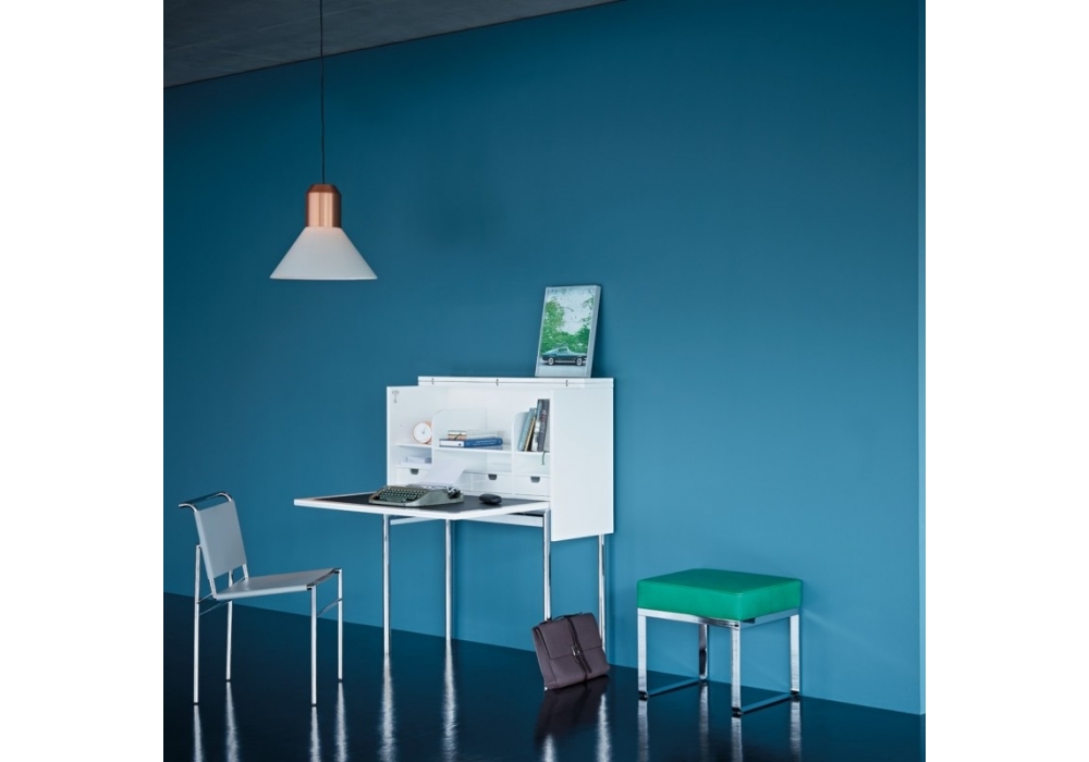 Banu von Eckart Muthesius für ClassiCon entworfen, ist ein schöner Hocker mit Gestell aus poliertem Edelstahl. Polsterung: Polyurethan mit Polyesterwatte auf Buchenrahmen. Bezug aus Gewebe oder Leder. In verschiedenen Ausführungen erhältlich.
