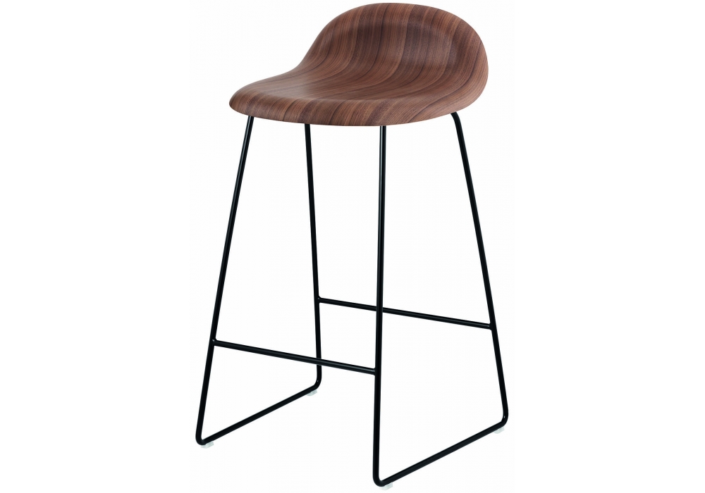 3D von Komplot Design für Gubi entworfen, ist ein Hocker mit Schale aus Hirek oder Holz und schwarzer oder Chrom Basis. Verfügbar in mehreren Ausführung.