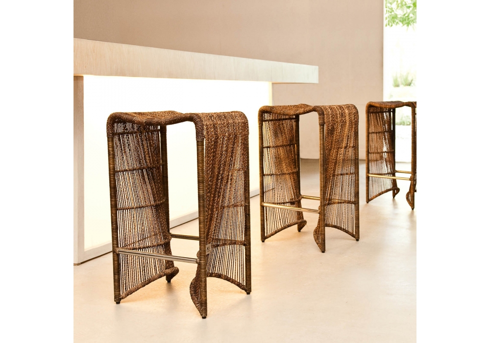 Pigalle von Kenneth Cobonpue entworfen, ist ein Hocker realisiert mit Stahl und natürlichem Abaca für indoor, Polyethylen für outdoor. Der filigrane, materialeffiziente Metallrahmen ist mit natürlichen Abaca Schlingen umspannt. Verfügbar in zwei Ausführung.