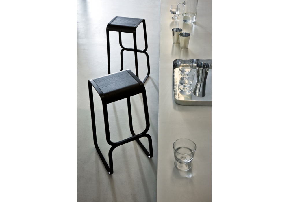 Continuum von Fabio Bortolani für Lapalma entworfen, ist ein schöner Hocker in zwei verschiedenen Höhen mit pulverlackiert Gestell. Die Sitzschale folgt den Konturen des Gestells und ist in Eiche gebleicht, schwarz gebeizt, weiß lackiert oder mit Soft-Leder bezogen lieferbar.