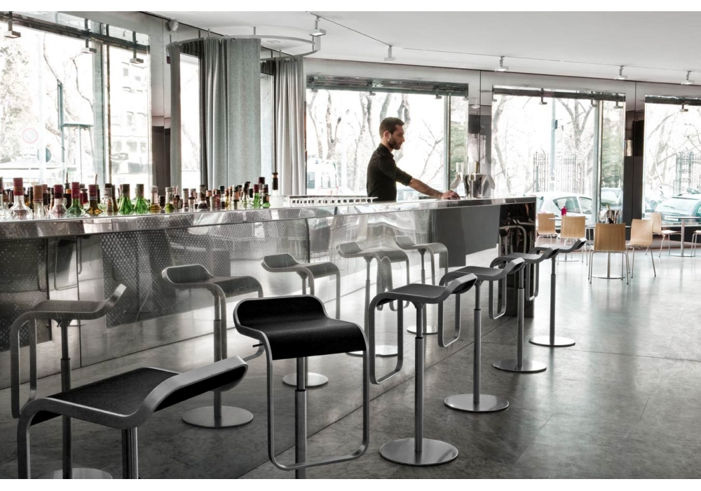 Lem Chrome von Shin & Tomoko Azumi für Lapalma entworfen, ist ein schöner drehbarer Hocker, mit Höhenverstellung durch Gasdruckfeder oder fixer Höhe. Rahmen aus Metall, matt verchromt, und Bodenplatte aus Edelstahl. Die Sitzfläche ist verfügbar in verschiedenen Ausführungen. Lem gibt es auch mit "Swing-back-Mechanismus" für den Sitz und Basis Ø 20 cm zur Bodenbefestigung, besonders geeignet für Bars und andere öffentliche Räume.
