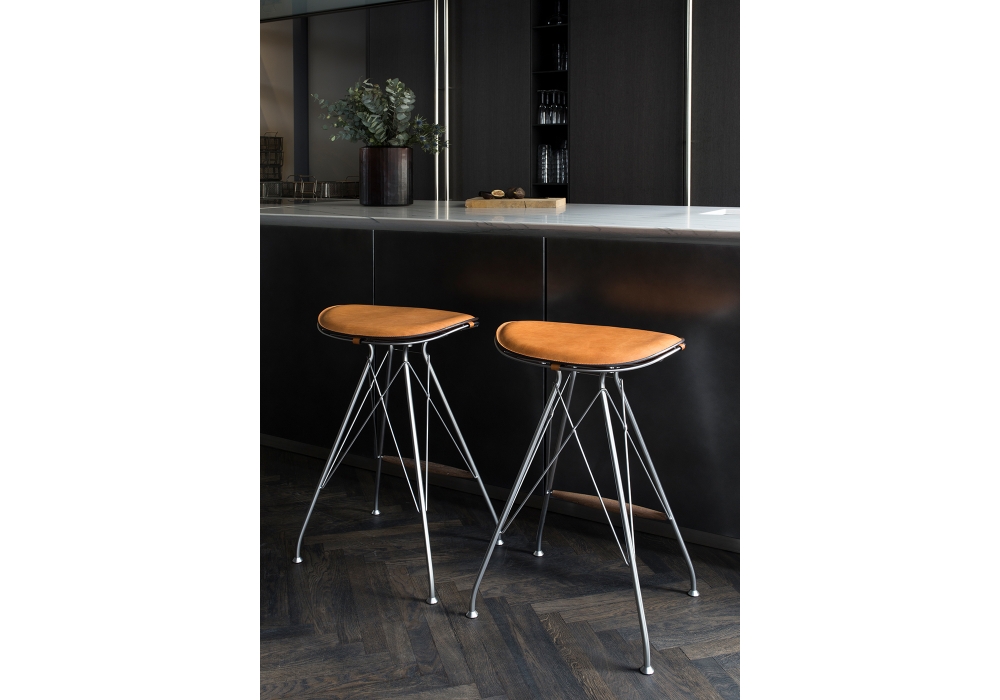 Wire von Overgaard & Dyrman für O&D entworfen, ist ein Bar Hocker mit Struktur aus mattschwarzem pulverbeschichtetem Stahl oder satin verchromter Stahl. Die Wire Kollektion ist mit einer Auswahl von 3 exklusiven Lederarten (Yellowstone, Matstone oder Elegance) in insgesamt 9 Farben erhältlich. Fußstütze in Massivholz in Eiche, Räuchereiche, geschwärztes Holz, Teak, Mahagoni oder Nussbaum. Auch verfügbar in 2 Höhen.
