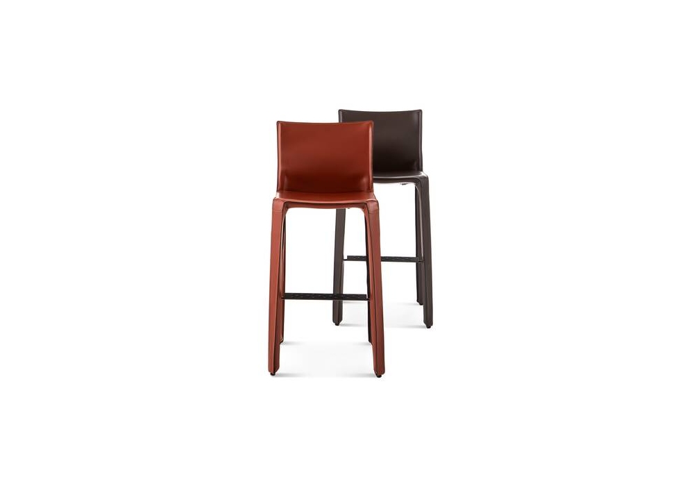 410 Cab von Mario Bellini für Cassina entworfen, ist ein Hocker aus Leder. Verfügbar in verschiedenen Ausführungen und Größen.