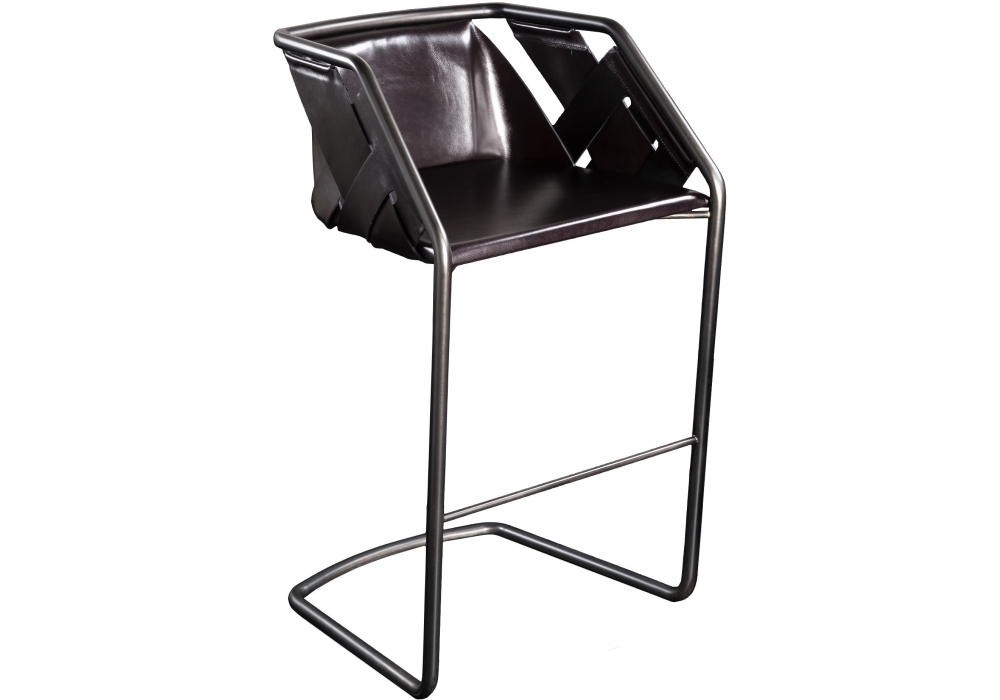 Strip Stool von Massimo Castagna für Henge entworfen, ist ein Hocker mit Gestell aus schwarz gebürstetem Stahl oder brüniertem Messing von Hand. Bezug in Leder.
