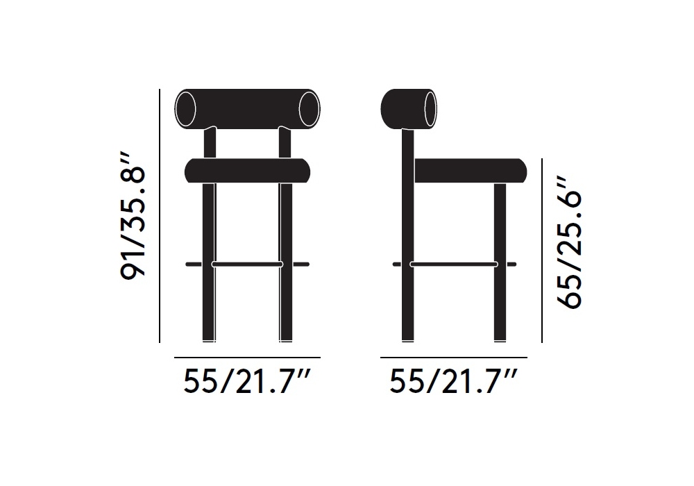 Fat Stool von Tom Dixon entworfen, ist ein Hocker mit Struktur und Fußstütze aus glänzend schwarz pulverbeschichtetem Stahl. Sitz und Rücken mit Schaumgummipolsterung und Stoffbespannung. In zwei Höhen erhältlich.