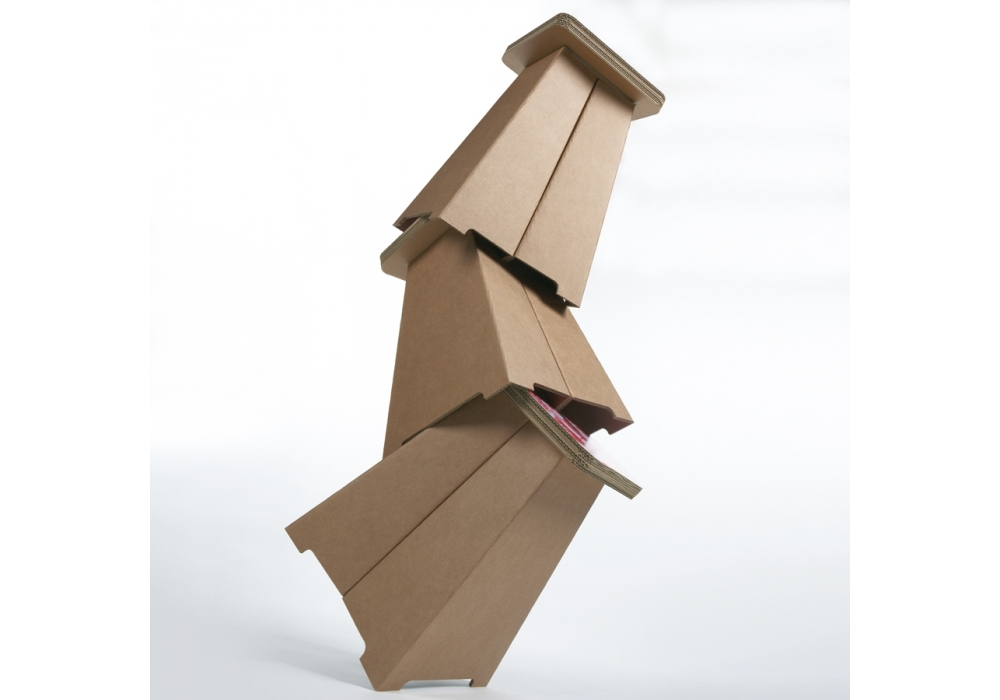 Puffo designed by Kubedesign is a small stool made of corrugated cardboard. Sitting in natural cardboard or finished with different textures or in white, black or red shockproof material.
