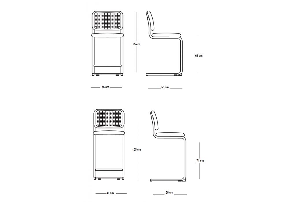 Cesca von Marcel Breuer für Knoll entworfen, ist ein Hocker mit Rohrgestell mit matter Epoxidfarbe oder glänzendem Chromfinish. Holzrahmen aus naturfarben lackierter oder schwarz lackierter Buche. Die Rohrflechterei erfolgt maschinell.