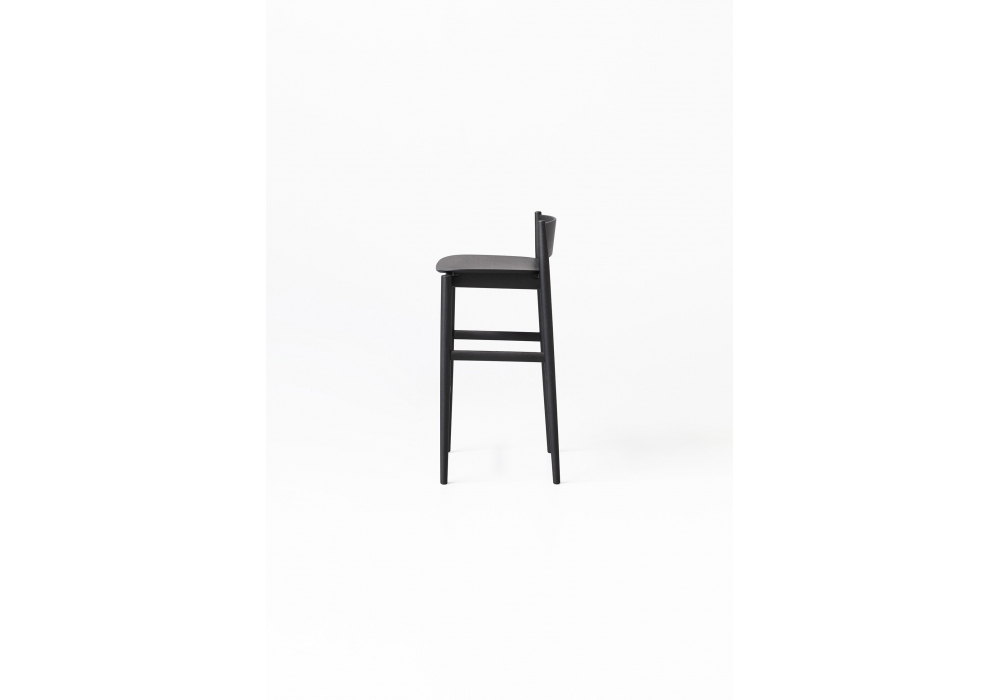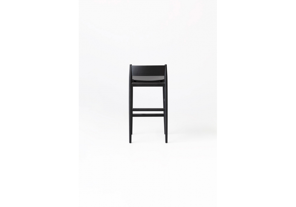 Brina von Piero Lissoni für Porro entworfen, ist ein Hocker aus massiver Eschenstruktur und gebogener Sperrholzlehne und Sitz.