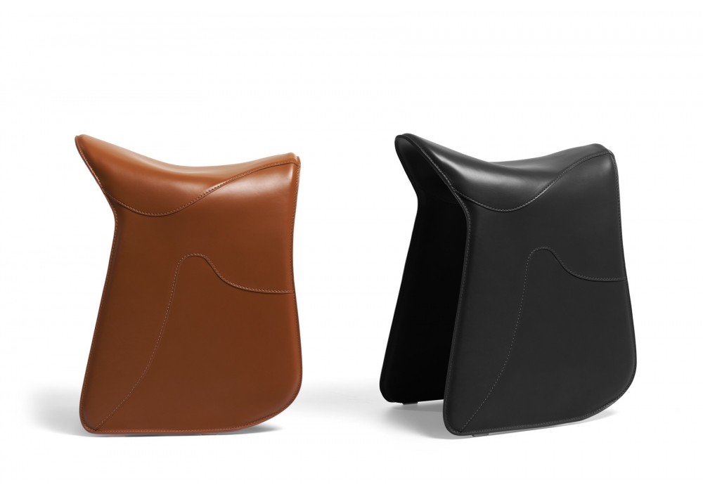 Pepe von Raffaella Mangiarotti für Opinion Ciatti entworfen, ist ein ikonischer Hocker mit Stahlstruktur mit Natur- oder schwarzem Lederbezug.