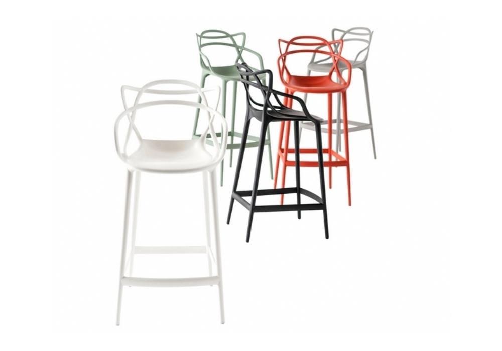 Masters Stool von Philippe Starck & Eugeni Quitllet für Kartell entworfen, ist ein Hocker aus recyceltem thermoplastischem Technopolymer mit Mineralfüllstoff und Soft-Touch-Behandlung. Verfügbar in mehreren Ausführungen und Abmessungen.