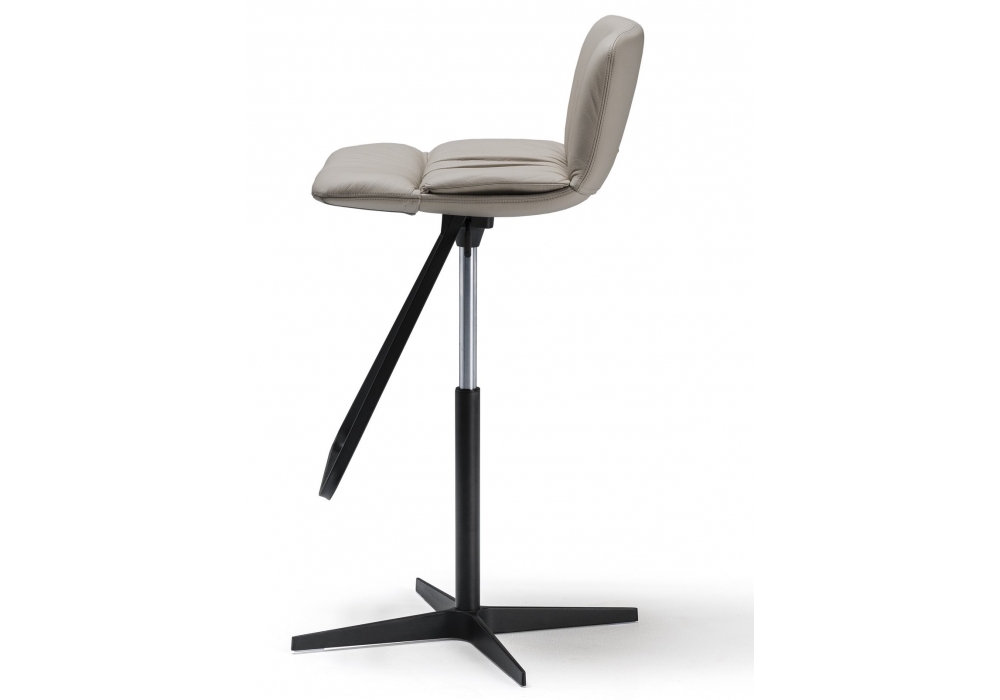 Axel X von Archirivolto für Cattelan Italia entworfen, ist ein drehbarer Hocker mit verstellbarer Höhe. Bezug aus Stoff, synthetic Nubuck, Kunstleder oder Softleder. 4-Sterne-Sockel aus poliertem Aluminium, Säule, Fußraste und Gasdruckfeder aus verchromtem Stahl, oder Basis, Säule, Fußraste in Stahl lackiert gaufriert schwarz oder titan und Gasdruckfeder aus verchromtem Stahl.