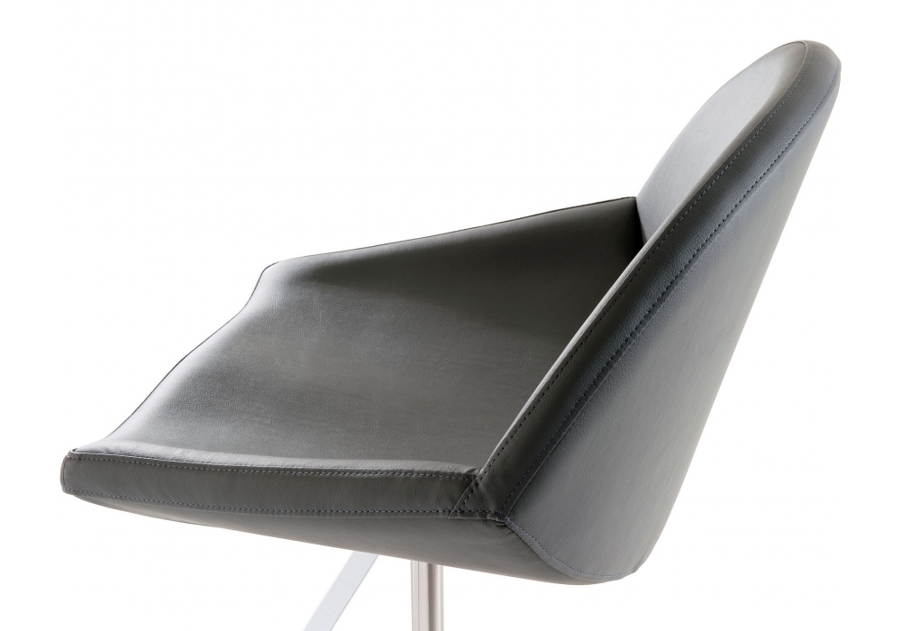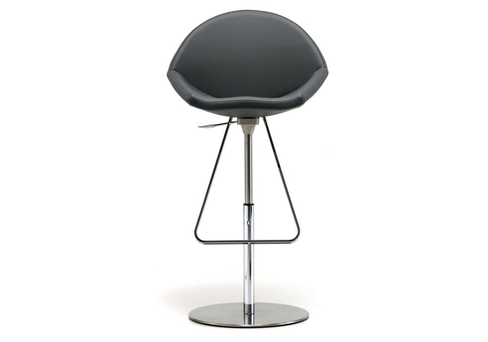 Kiss von David Obendorfer für Cattelan Italia entworfen, ist ein drehbarer Hocker mit verstellbarer Höhe. Bezug aus Stoff, synthetic Nubuck, Kunstleder oder Softleder. Runder Sockel aus Edelstahl satiniert und Säule, Fußraste und Gasdruckfeder aus verchromtem Stahl, oder Basis, Säule, Fußraste in Stahl lackiert schwarz gaufriert und Gasdruckfeder aus verchromtem Stahl.