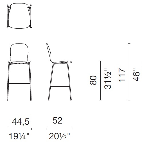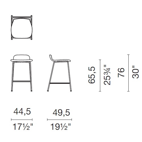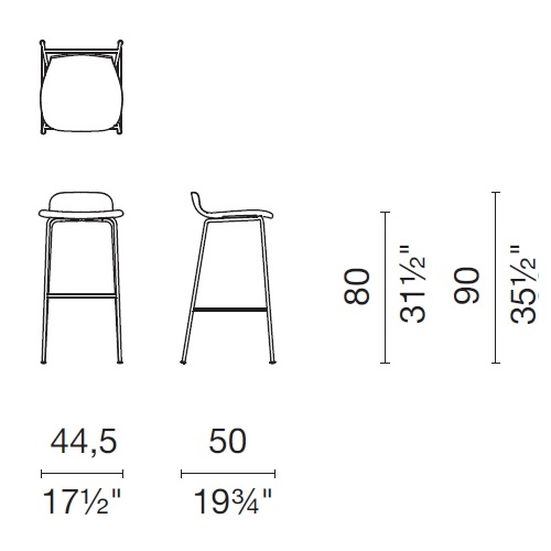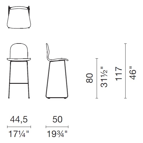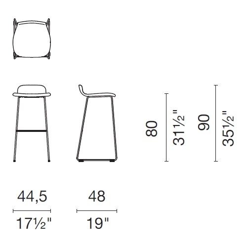 Tate Soft von Jasper Morrison für Cappellini entworfen, ist ein Hocker mit Sitzschale aus Buchensperrholz mit Bezug aus Stoff oder Leder und Kufengestell aus Metall oder mit 4 Beinen. Verfügbar in mehreren Ausführungen und Abmessungen.