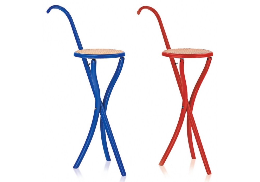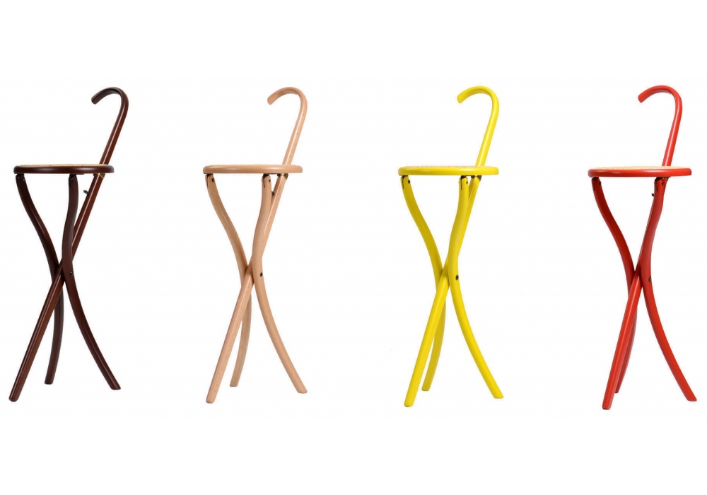Stocksessel von Gebrüder Thonet Vienna ist ein kombinierter Klapphocker und Gehstock. Struktur aus Buche, in verschiedenen Ausführungen erhältlich. Wiener Strohsitz.