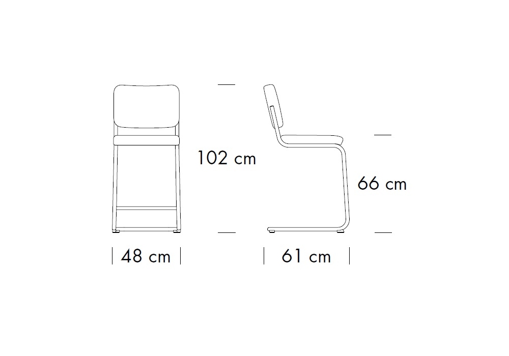 S 32 PVH / S 32 PVHT von Marcel Breuer, Künstlerisches Copyright Mart Stam für Thonet entworfen, ist ein verchromter Stahlrohrhocker, der in zwei Höhen erhältlich ist. Gepolsterter Sitz und Rücken mit Stoff-, Leder- oder Lederbezug. Kordelzug oder Naht in verschiedenen Ausführungen erhältlich.