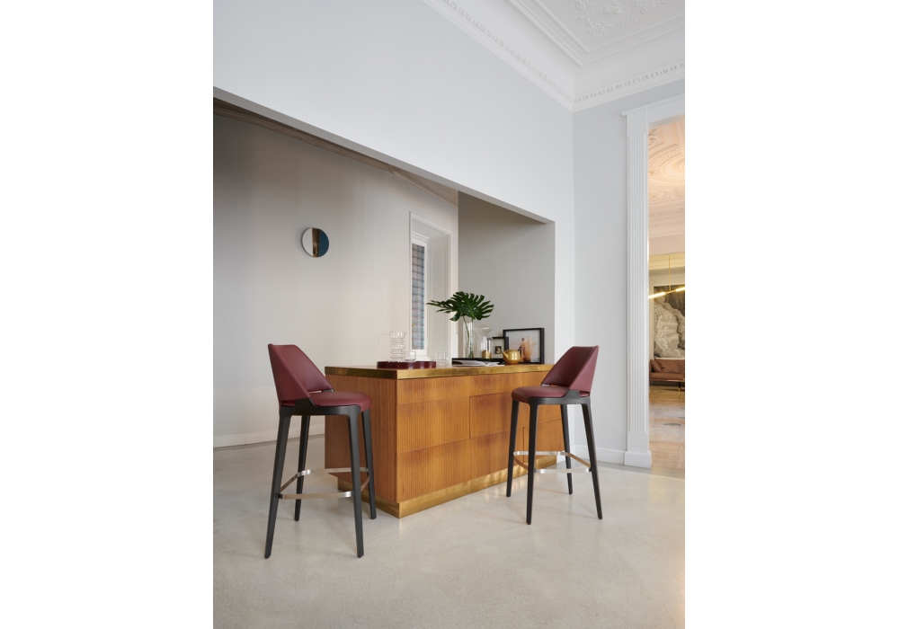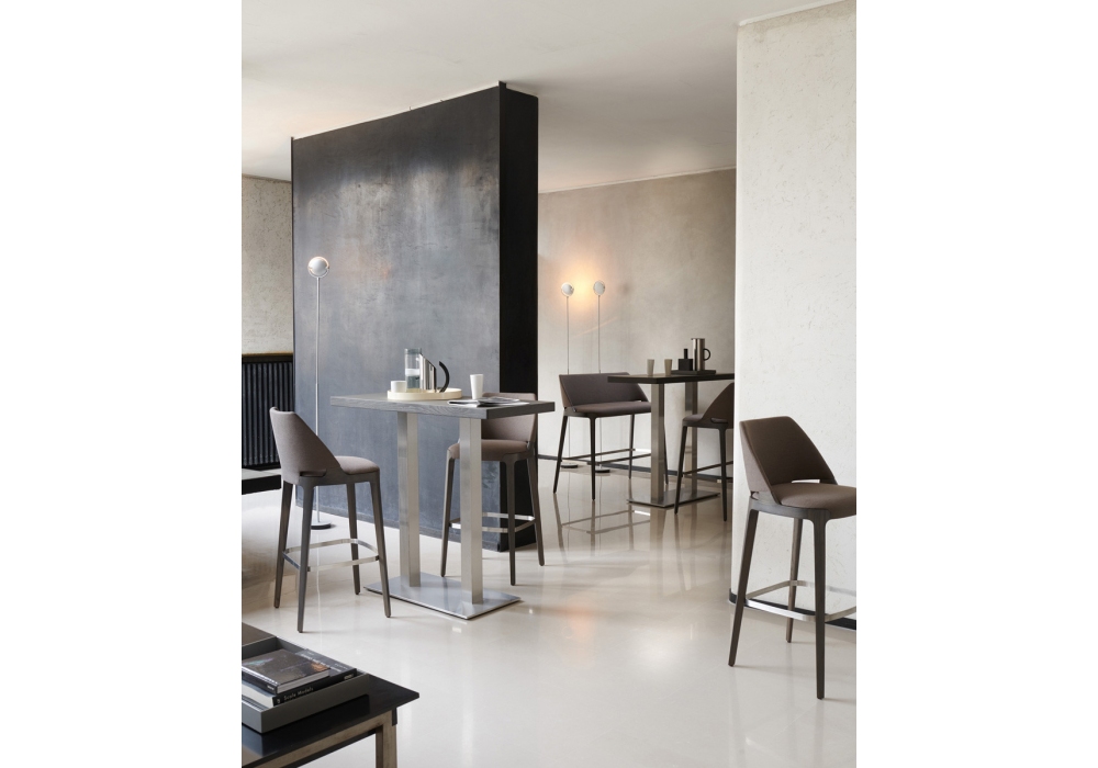 Velis, von Mario Ferrarini für Potocco entworfen, ist ein Hocker mit Struktur aus Metall und Eschenholz oder Canaletto-Nussbaum in verschiedenen Ausführungen. Die Basis besteht aus vier Beinen aus massiver Esche oder Nussbaum Canaletto mit Details aus satiniertem Edelstahl. Sitz und Rückenlehne sind mit feuerfestem Polyurethanschaum gepolstert und mit verschiedenen Stoffen, Leder oder Kunstleder bezogen. Velis ist in zwei verschiedenen Größen erhältlich.