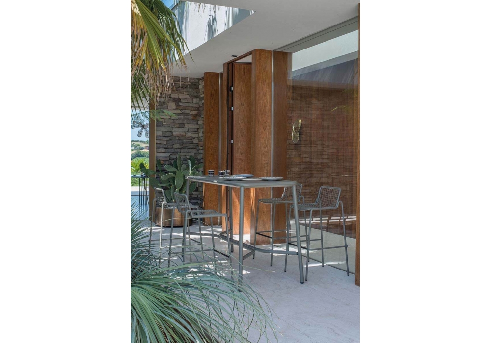 Rio R50 von Cristell / Gargano für EMU entworfen, ist ein hochwertiger Stahlhocker mit hoher mechanischer Belastbarkeit und hoher Widerstandsfähigkeit gegen Gewichtsbelastung, der sich natürlich in jede Umgebung im Innen- und Außenbereich einfügt. Erhältlich in verschiedenen Ausführungen.