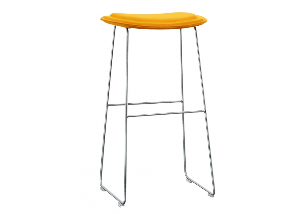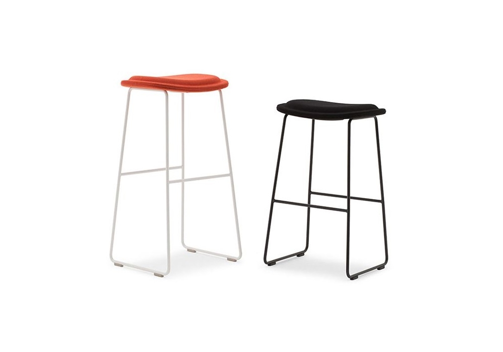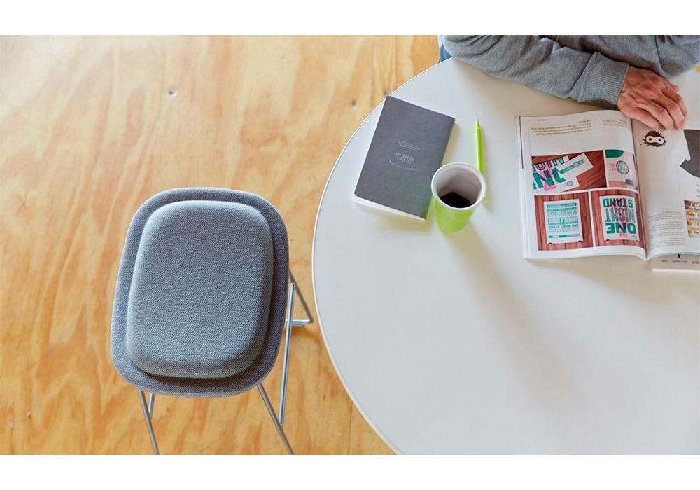 Hi Pad von Jasper Morrison für Cappellini entworfen, ist ein Hocker mit gepolstertem Holzsitz, bezogen mit Stoff oder Leder und Stahlgestell. Verfügbar in mehreren Ausführungen.