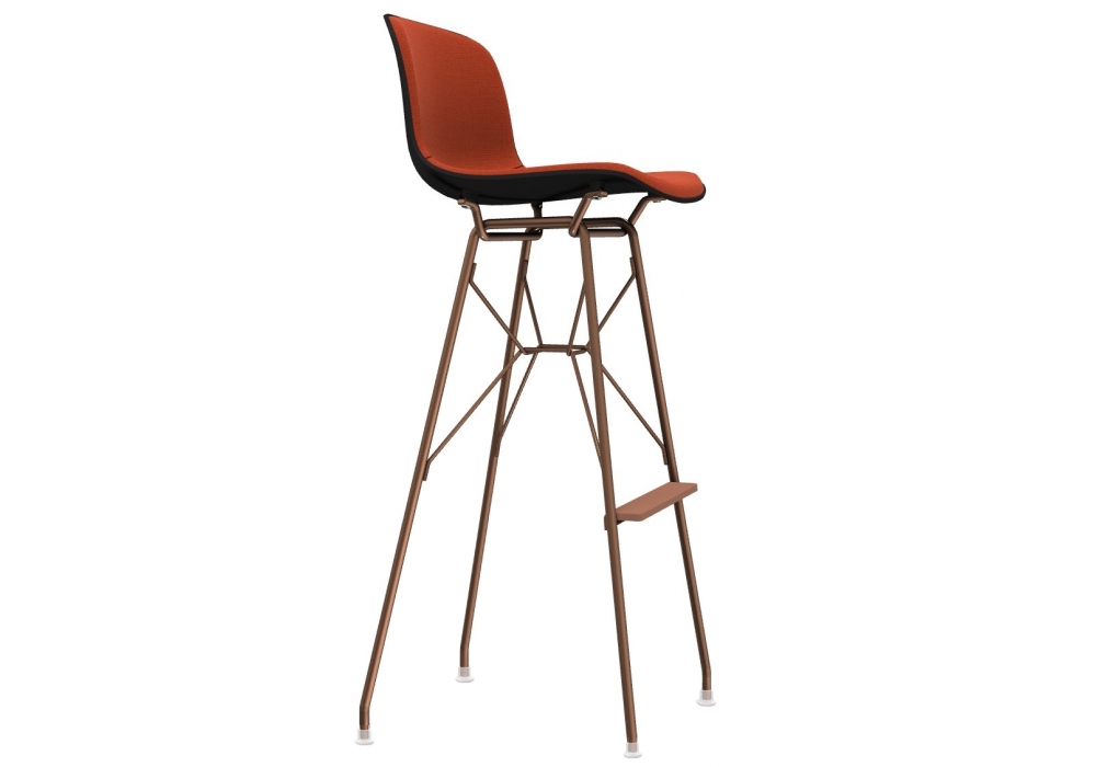 Troy Wireframe Polypropylene von Marcel Wanders für Magis entworfen, ist ein Hocker mit Struktur aus Gold, Kupfer oder lackiertem Stahlrohr. Sitz aus Polypropylen, Vorderseite mit feuerfestem Polyurethanschaum gepolstert und mit Stoff oder Leder bezogen. Erhältlich in verschiedenen Ausführungen und zwei Größen.