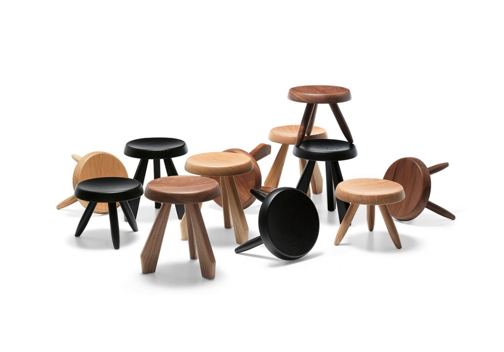 524 Tabouret Berger von Charlotte Perriand für Cassina entworfen, ist ein Hocker aus massiver Eiche oder Canaletto-Nussbaum.