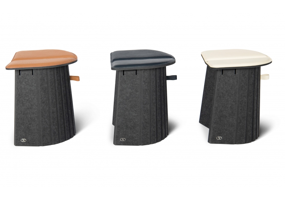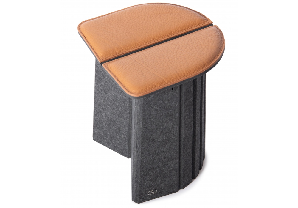 DS-5010/05 von Simon Busse für De Sede entworfen, ist ein Klapphocker mit Untergestell aus anthrazitgrauem Filz und Sitz mit SEDEX-Polsterung aus hochwertigem Schaumstoff und Leder. Verfügbar in verschiedenen Ausführungen.