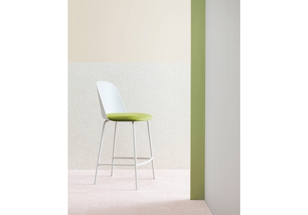 Mariolina von E-ggs für Miniforms entworfen, ist ein Hocker mit Gestell aus lackiertem Metall, Schale aus Polypropylen in der gleichen Ausführung wie das Gestell, Sitzfläche mit Stoffbezug. Erhältlich in verschiedenen Ausführungen.