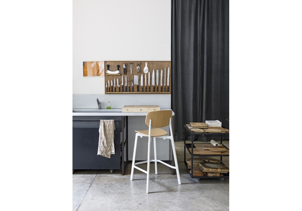 Colander von Patrick Norguet für Kristalia entworfen, ist ein Hocker mit Sitz und Rückenlehne aus Holz und lackiertem Aluminiumrahmen. Erhältlich in zwei Abmessungen und mehreren Ausführungen.