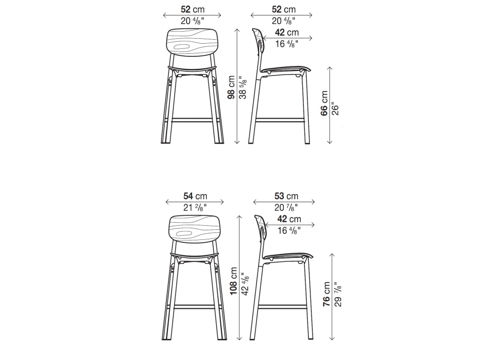 | Abmessungen | 52 x 52 x H 98 cm - Hs 66 cm; 54 x 53 x H 108 cm - Hs 76 cm. |