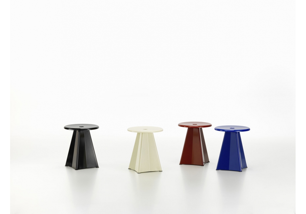 Tabouret Métallique von Jean Prouvé für Vitra entworfen, ist ein Hocker aus gebogenem Stahlblech, pulverbeschichtet. Verfügbar in mehreren Ausführungen.