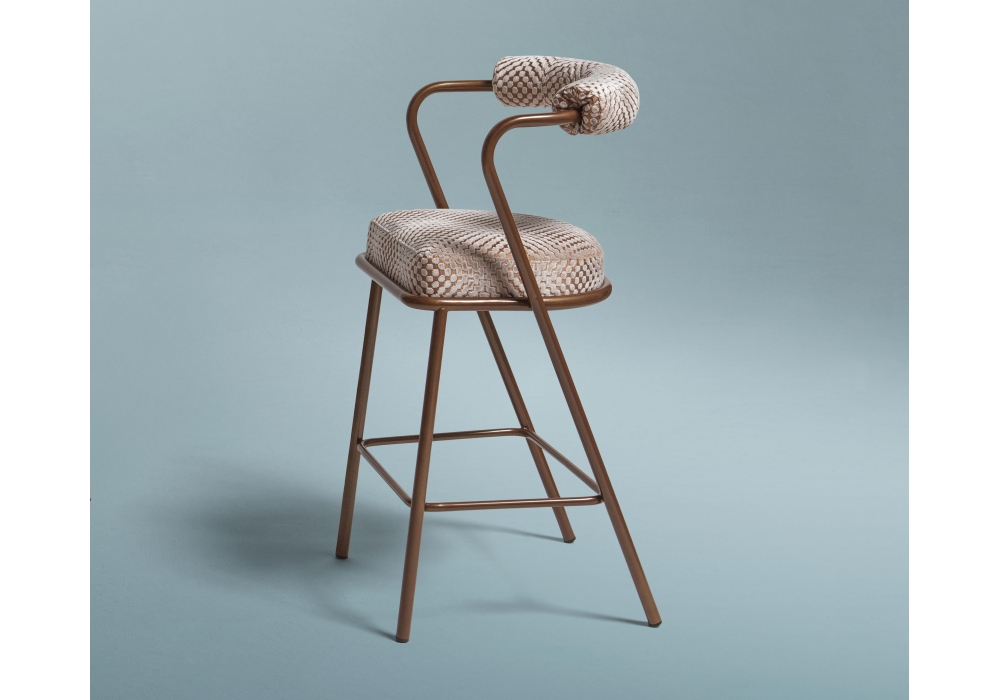 Baba von Serena Confalonieri für My Home Collection entworfen, ist ein Hocker mit einer Struktur aus lackiertem Stahlrohr. Der Rücken und die Rückenkissen sind mit Polyurethankautschuk und Polyesterfaser bezogen. Die Stoffpolsterung kann einfarbig oder mehrfarbig sein. Baba ist in verschiedenen Größen, Bespannungen oder Strukturausführungen erhältlich.