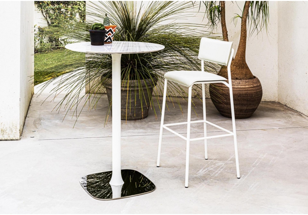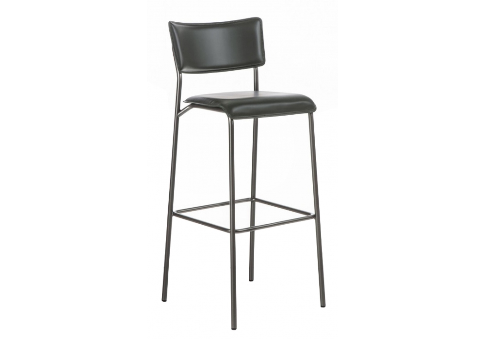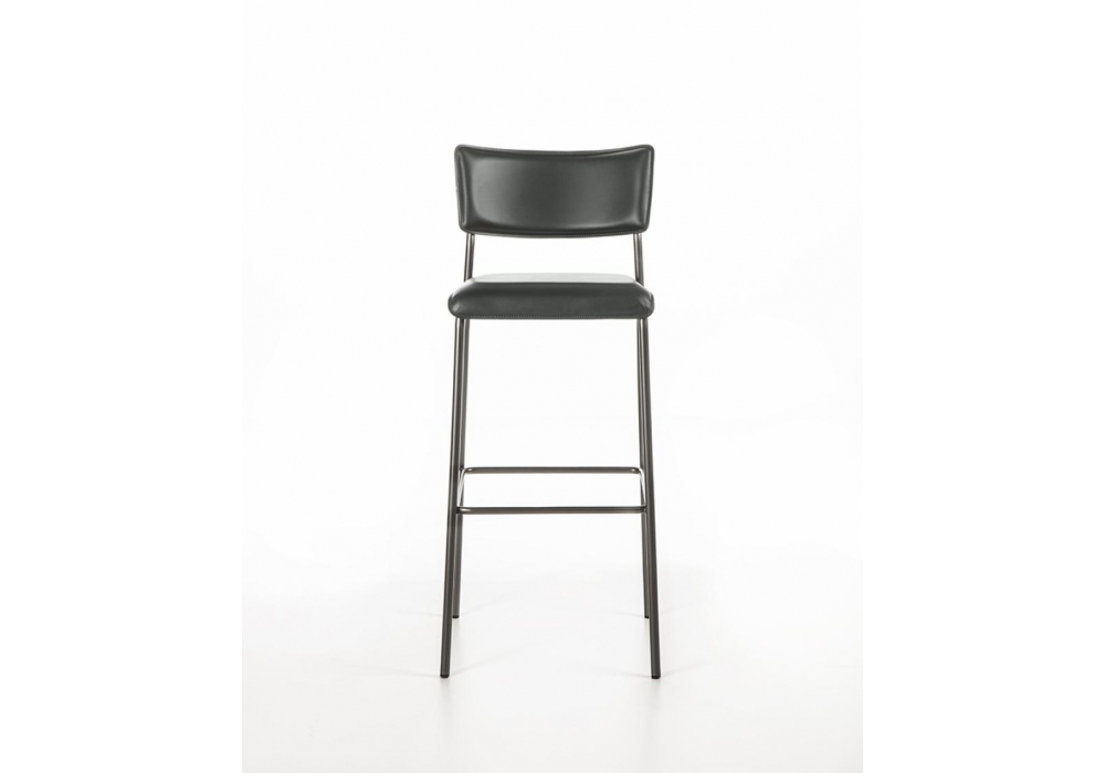 Isotta von Studio Nove.3 für Enrico Pellizzoni entworfen, ist ein Hocker mit Metallrohrstruktur. Rückenlehne und Sitz aus Holz mit Leder bezogen. Erhältlich in verschiedenen Ausführungen.