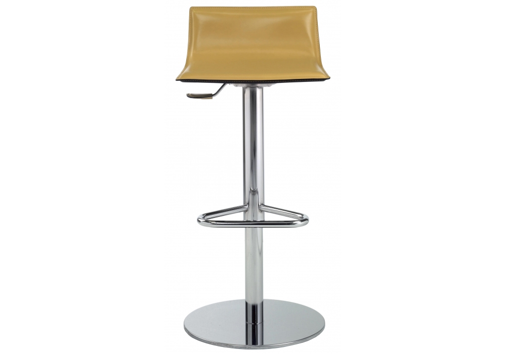 Micad von Michele Cadore für Enrico Pellizzoni entworfen, ist ein Drehhocker mit Schale aus Buchensperrholz und Lederbezug, verfügbar in verschiedenen Ausführungen. Verstellbare Höhe.