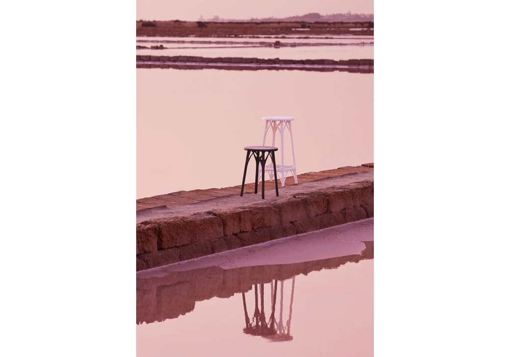 A.I. Stool Light von Philippe Starck für Kartell entworfen, ist ein Hocker aus recyceltem thermoplastischem Technopolymer mit Mineralfüllstoff und Soft-Touch-Behandlung. Verfügbar in mehreren Ausführungen und Abmessungen.