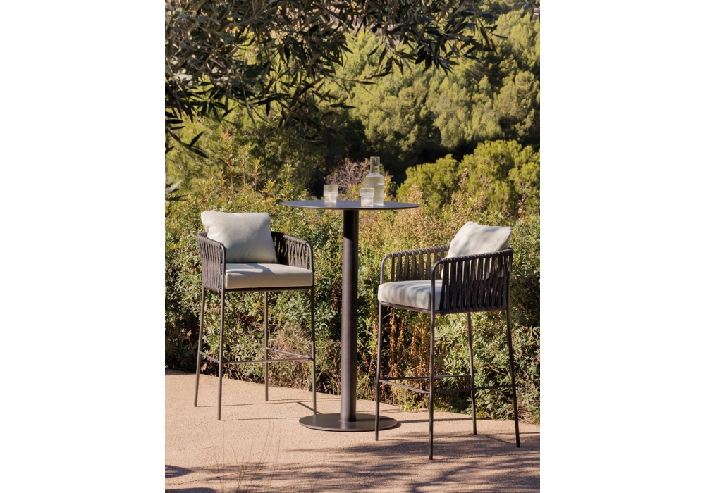 Nido von Javier Pastor für Expormim entworfen, ist ein Barhocker aus handgewebtem Edelstahlrohr und mit Polyesterpulver veredelt. Handgewebtes Finish mit hochfestem Seil. Erhältlich in verschiedenen Ausführungen und zwei Größen.