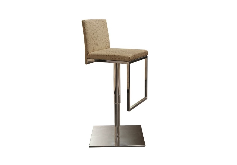 Genesis entworfen und hergestellt von Turri, ist ein Hocker mit höhenverstellbarem Untergestell durch einen Gaskolben. Nicht abnehmbarer Bezug aus Leder oder Stoff. Verfügbar in zwei Modellen.