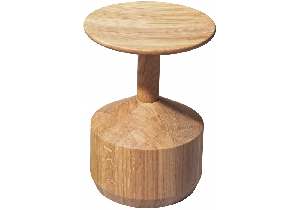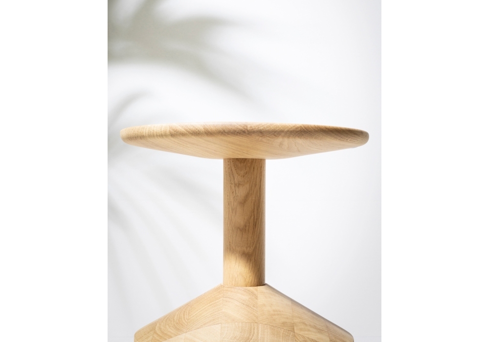 Pezzo von Stephanie Jasny für Miniforms entworfen, ist ein Hocker aus massiver geflammter Eiche oder nussbaumfarben gebeizter Eiche.