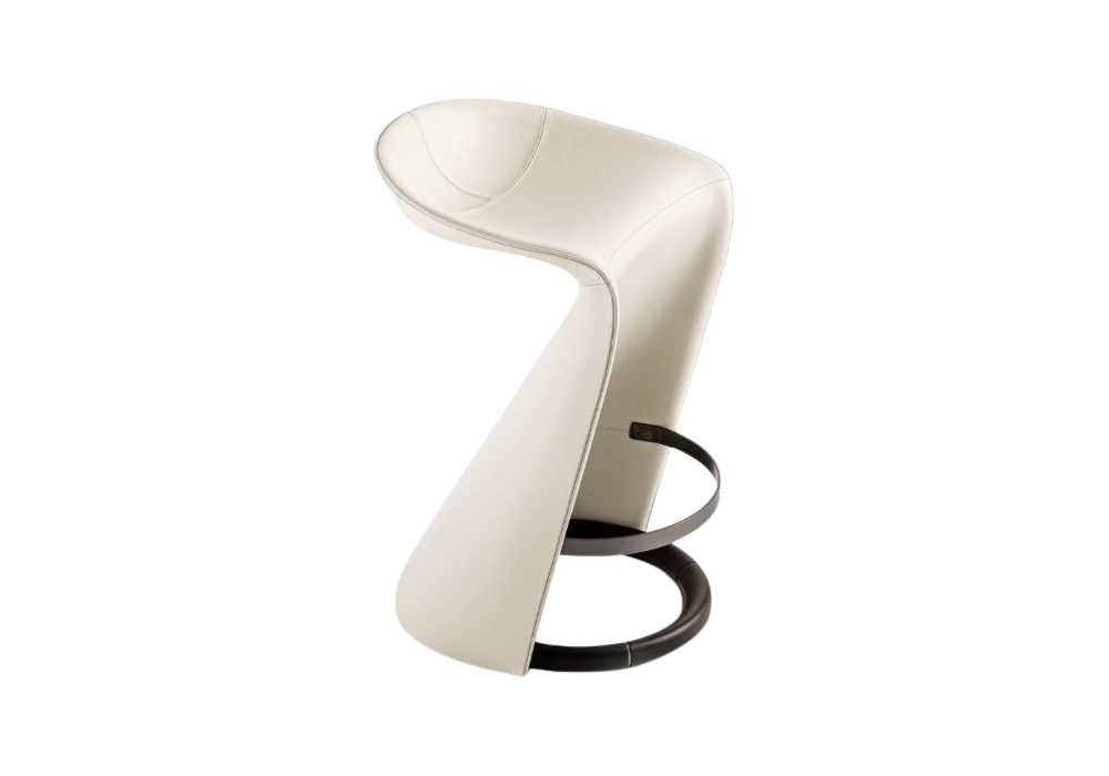Skirt von M2Atelier für Giorgetti entworfene ist ein Hocker mit Ringfuß aus massiver Esche, verfügbar in verschiedenen Ausführungen. Die Fußstütze besteht aus zinnfarbenem Metall. Die Polsterung besteht aus Leder in zahlreichen Farben. Auch in zwei Höhen erhältlich.