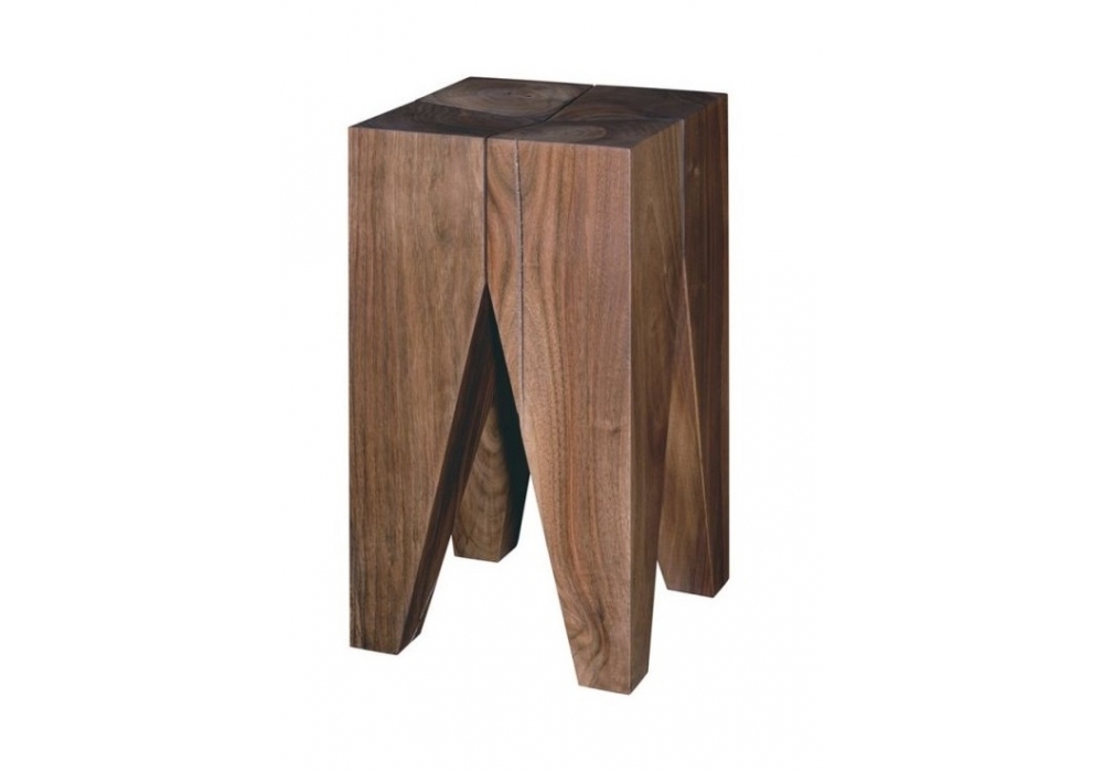 ST04 Backenzahn, entworfen von Philipp Mainzer für E15, ist ein Hocker aus massiver Eiche oder Nussbaum mit Öl-Finish, die Mitte des Baums wird für seine Form und sein Detail verwendet.
