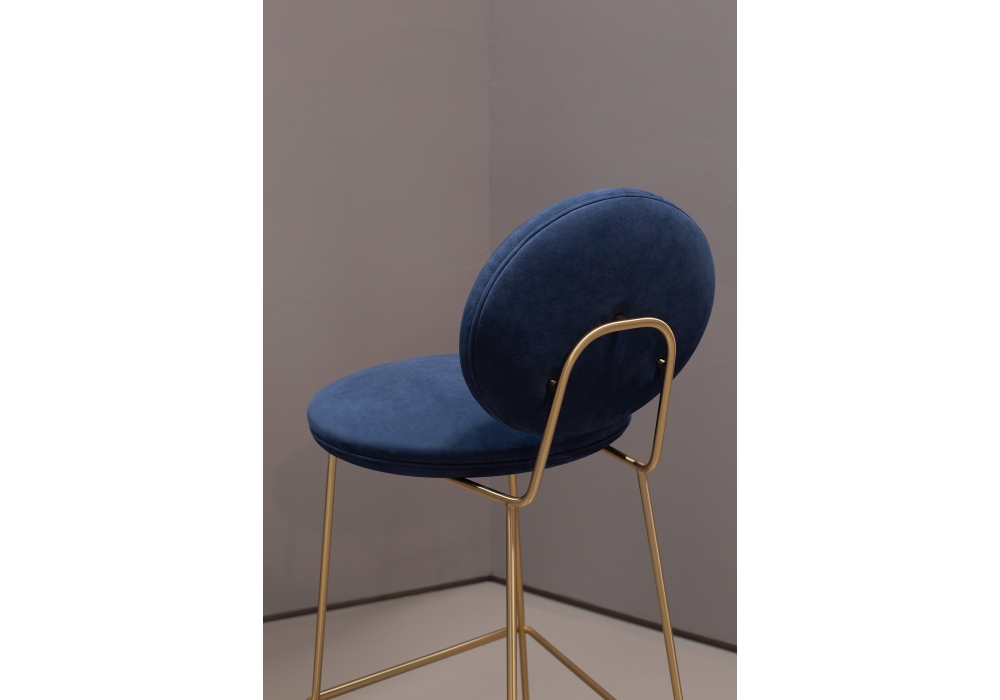 Gemma von Draga & Aurel für Baxter entworfen, ist ein Hocker mit Struktur aus Metall, Sitz und Rücken aus Buchenholz, Armlehnen aus massiver Buche. Polyurethan-Schaumstofffüllung mit Acrylglasfaser.