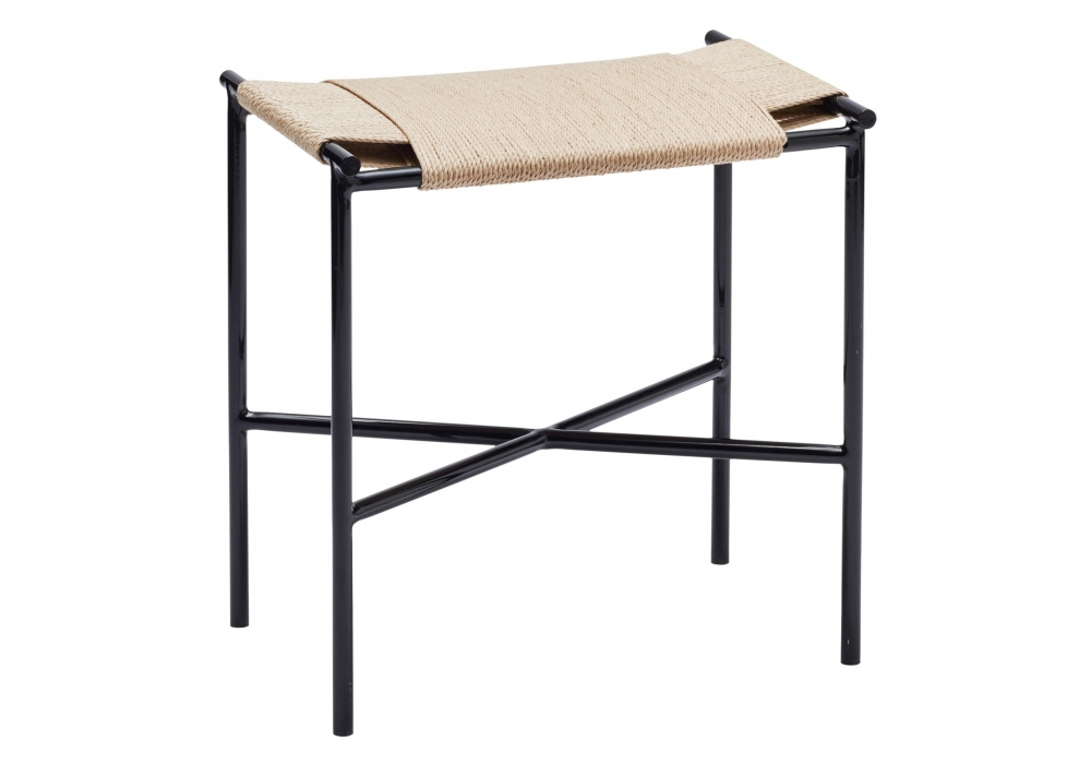 Vent von Chris Liljenberg Halstrøm für Skagerak entworfen, ist ein Hocker aus schwarz lackiertem Stahl und einer Sitzfläche aus Seil.