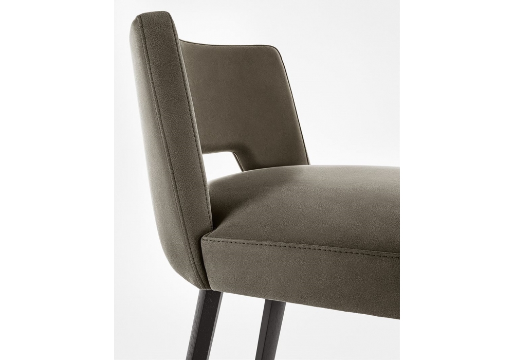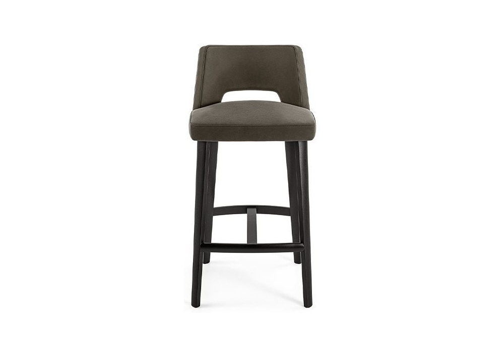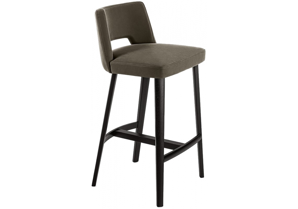 Thea von Pinuccio Borgonovo für Gallotti&Radice entworfen, ist ein Barhocker mit Innengestell aus Holz und Nebenprodukte mit Polsterung aus unverformbarem Polyurethanschaum mit unterschiedlicher Dichte und Polyesterfaser. Mit Stoff oder Leder nach Musterkarte bezogen. Füsse Eichenholz schwarz offenporig lackiert und Fußstütze aus anthrazitgrau lackiertem Metall. Nicht abziehbare Bezüge.