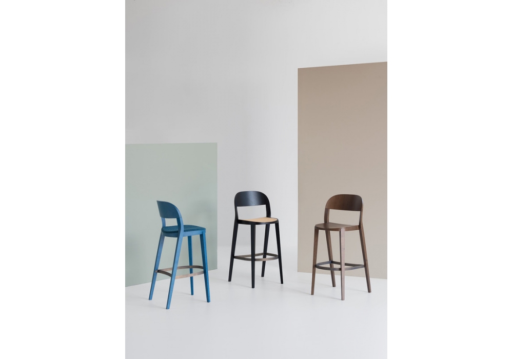 Minima von Mario Ferrarini für Potocco entworfen ist ein Barhocker der vollständig aus lackiertem Eschenholz besteht. Minima ist in verschiedenen Ausführungen und mit einer Sitzfläche komplett aus Holz oder mit Wienerstrohgeflecht erhältlich.