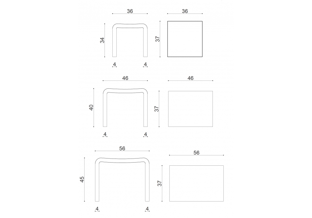 | Abmessungen | 36 x 37 x H 34 cm; 46 x 37 x H 40 cm; 56 x 37 x H 45 cm. |