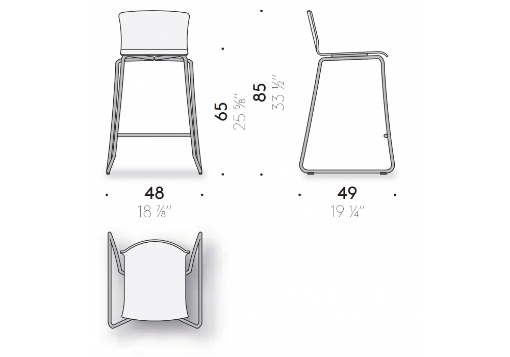 Olimpia von Vico Magistretti für DePadova entworfen ist ein Hocker mit schwarz pulverbeschichteter Stahlstruktur und Sitz aus gebogenem Buchensperrholz, verfügbar in verschiedenen Ausführungen.