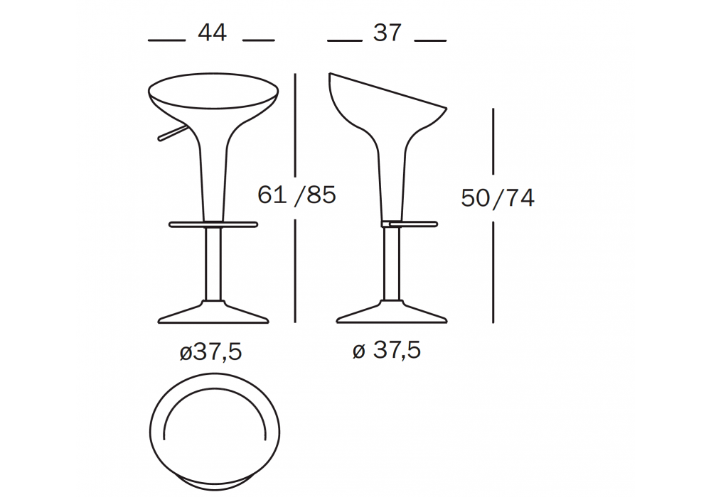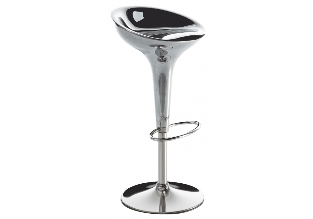 Al Bombo von Stefano Giovannoni für Magis entworfen, ist ein Drehhocker mit Sitz aus poliertem Aluminiumdruckguss und Gestell aus Edelstahl. Höhenverstellbar über einen Gaskolben.
